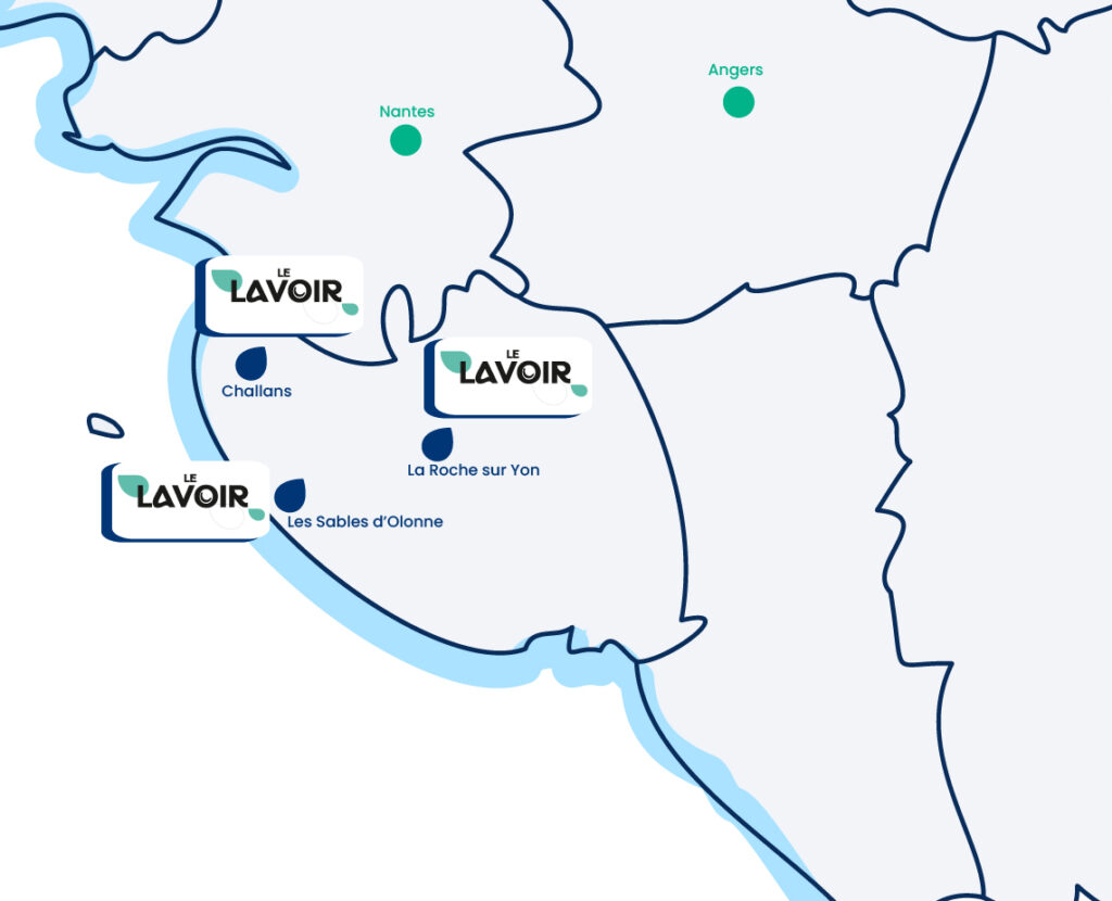 Le Lavoir est le réseau de pressings du Groupe NIL en Vendée. Implanté aux Sables d’Olonne, à La Roche sur Yon et à Challans, Le Lavoir accompagne particuliers et professionnels dans l’entretien et le soin de leurs textiles.